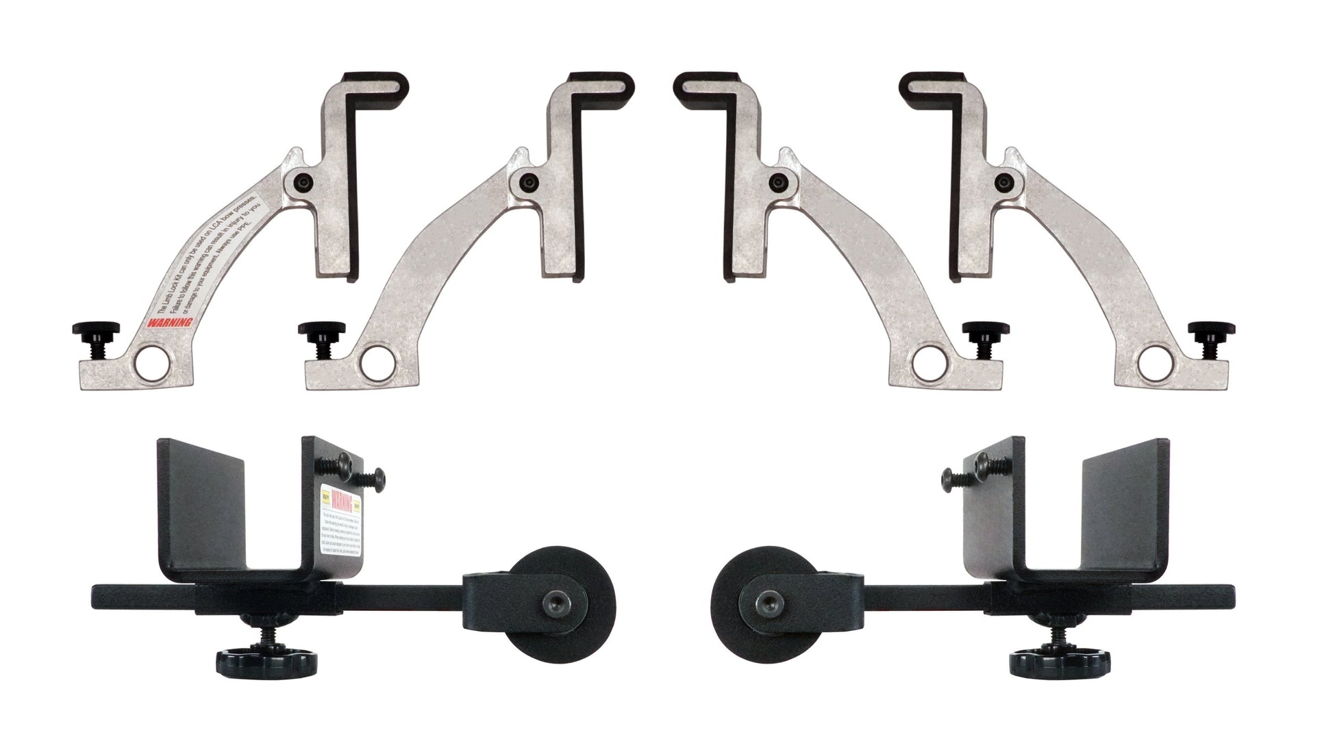 The Limb Lock Kit is a perfect addition to any LCA bow press and is designed specifically for pressing beyond parallel limb bows. The Limb Locks are foam-covered rollers that act as a safety to hold the bow from slippage when pressing beyond parallel models. These are adjustable depending on the bow model you are pressing. The Limb Lock Fingers use a rotating head design which keeps the limbs of your bow fully enclosed no matter the angle of the limbs as you press the bow. Each finger is rubber coated to protect the bow limbs from being scratched, and you can adjust all four fingers in/out and forward/back to match any limb angle or design.